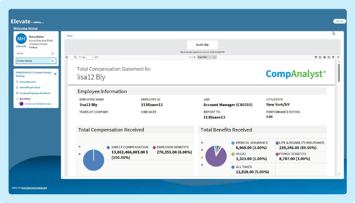 Elevate by Salary.com® makes it simple for HR to share, for managers to explain, and for employees to understand the full value of their pay — all in one secure place.